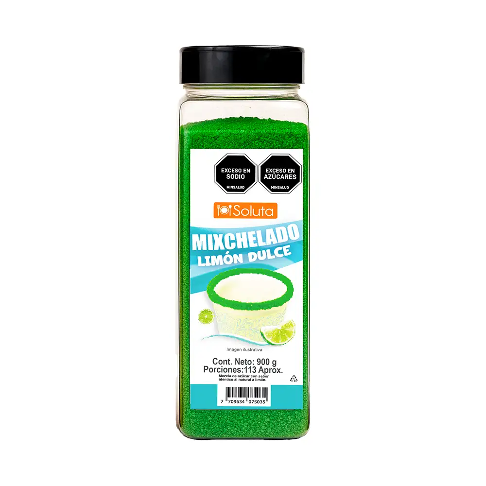 El Mix-Chelado de Limón Dulce Soluta x 900 g es un mix granulado para escarchar vasos, con un sabor dulce y cítrico ideal para micheladas, cócteles y bebidas refrescantes.